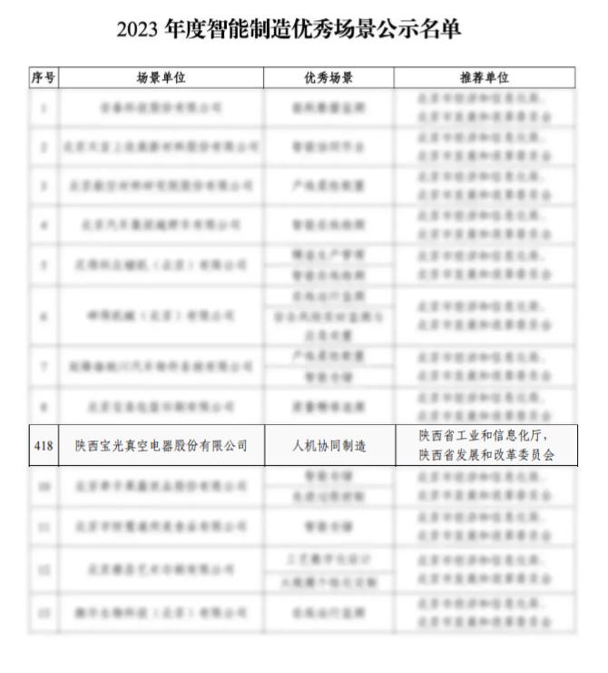 近期,工業(yè)和信息化部公布了“2023年度智能制造示范工廠揭榜單位和優(yōu)秀場(chǎng)景名單”,寶光股份申報(bào)的《真空滅弧室關(guān)鍵零件智能生產(chǎn)線(xiàn)》項(xiàng)目順利入選智能制造示范優(yōu)秀場(chǎng)景,標(biāo)志著寶光股份智能制造水平邁上新臺(tái)階。