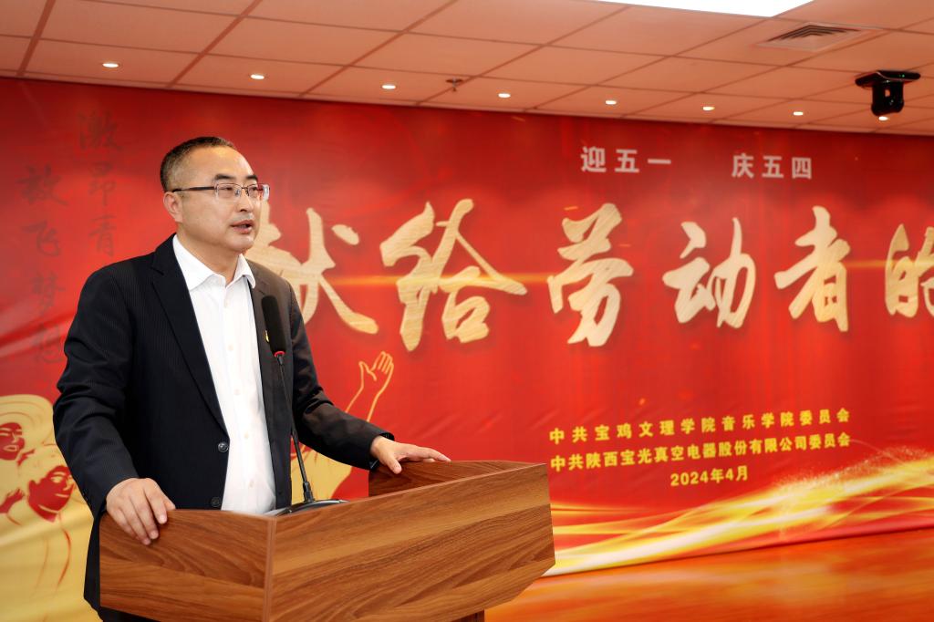 為深入學(xué)習(xí)宣傳貫徹習(xí)近平新時(shí)代中國(guó)特色社會(huì)主義思想和黨的二十大精神,切實(shí)營(yíng)造尊重勞動(dòng)、關(guān)愛(ài)青年的濃厚氛圍,在“五一”勞動(dòng)節(jié)、“五四”青年節(jié)來(lái)臨之際,公司黨委與寶雞文理學(xué)院音樂(lè)學(xué)院黨委聯(lián)合開(kāi)展“弘揚(yáng)勞動(dòng)精神 傳承工匠文化”道德講堂,為廣大干部職工送上了一場(chǎng)精彩紛呈的文化大餐。寶雞文理學(xué)院音樂(lè)學(xué)院黨委書(shū)記黃瑋、寶光股份黨委書(shū)記、董事長(zhǎng)謝洪濤出席活動(dòng)并致詞。