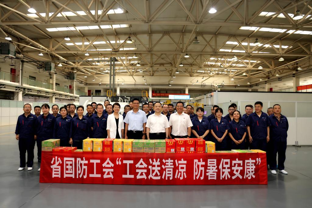 靳海斌一行來公司慰問職工“送清涼”,帶來了省國防工會的關(guān)懷和厚愛,一聲聲親切貼心的問候,一句句熱情洋溢的話語,一份份貼心的清涼用品,讓在場的一線職工深切感受到上級工會組織的關(guān)心與問候,讓職工們感受到了“娘家人”的溫暖。