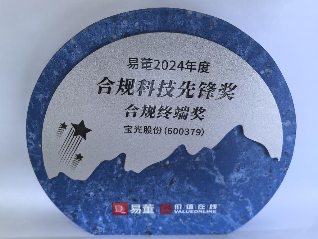 據(jù)悉,易董2024年度合規(guī)科技先鋒獎項旨在表彰優(yōu)秀、鼓勵先進(jìn)、樹立典范,倡導(dǎo)鼓勵上市公司合規(guī)科技創(chuàng)新和實踐,促進(jìn)上市公司高質(zhì)量發(fā)展,促進(jìn)資本市場健康前行。此次頒獎共有200多家上市公司及投資機(jī)構(gòu)人士參加,競相角逐40余個入圍名額。公司此次獲獎體現(xiàn)了資本市場、監(jiān)管部門和投資者對寶光股份合規(guī)管理工作的肯定和對公司長期以來著力提升公司治理水平、信息披露質(zhì)量和規(guī)范運(yùn)作能力的認(rèn)可。