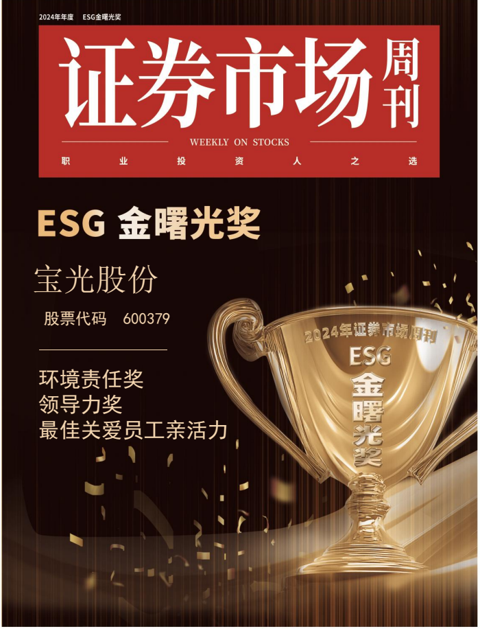 11月23日,2024《證券市場(chǎng)周刊》ESG“金曙光獎(jiǎng)”及“十大ESG領(lǐng)先企業(yè)榜單”評(píng)選結(jié)果揭曉。寶光股份憑借在ESG領(lǐng)域的卓越表現(xiàn),榮獲“金曙光環(huán)境責(zé)任獎(jiǎng)”“十大ESG領(lǐng)先企業(yè)—最佳關(guān)愛員工親活力獎(jiǎng)”,寶光股份黨委書記、董事長(zhǎng)謝洪濤榮獲“金曙光領(lǐng)導(dǎo)力獎(jiǎng)”。這是對(duì)寶光股份及企業(yè)“帶頭人”在ESG管理方面(非財(cái)務(wù)管理方面)高水平表現(xiàn)的高度贊譽(yù),也是對(duì)企業(yè)在ESG實(shí)踐方面持續(xù)努力成果的肯定。