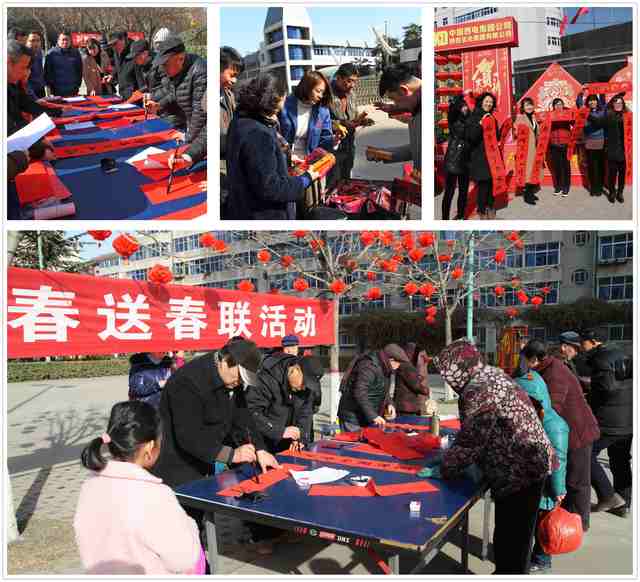 進(jìn)一步豐富職工和居民的精神文化生活,弘揚(yáng)中國(guó)傳統(tǒng)文化,營(yíng)造歡樂、喜慶、祥和的節(jié)日氛圍。在2018年新春佳節(jié)即將來臨之際,公司工會(huì)辦公室和社區(qū)居委會(huì)開展了“寫福送春聯(lián)”活動(dòng),組織來自公司的6位書法愛好者現(xiàn)場(chǎng)揮毫,分別在社區(qū)燈光球場(chǎng)和生產(chǎn)區(qū)門前為職工寫春聯(lián),將公司的關(guān)懷和新春祝福送給廣大職工家屬。