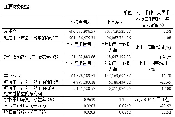 寶光股份2018年1季度主要財務(wù)指標(biāo)