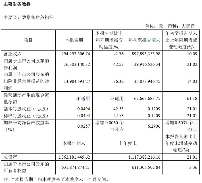 寶光股份2022年三季度主要會計數(shù)據(jù)和財務(wù)指標(biāo)
