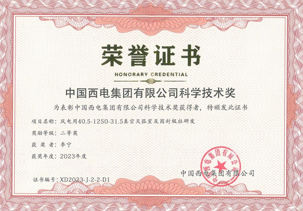 近日,寶光股份《換流變壓器有載分接開關(guān)用真空滅弧室研發(fā)》與《風(fēng)電用40.5 kV/1250 A-31.5 kA真空滅弧室及固封極柱研發(fā)》兩個(gè)技術(shù)創(chuàng)新項(xiàng)目,分別榮獲2023年度中國西電集團(tuán)科學(xué)技術(shù)獎(jiǎng)“一等獎(jiǎng)”與“二等獎(jiǎng)”!